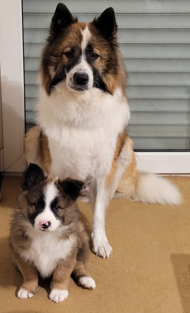 Lotta hat in der Nacht vom 01.11.2025 auf den 02.11.2025 unseren G-Wurf zur Welt gebracht! Nachdem sie eine ganze Nacht durchgehechelt hat und einen ganzen Tag auf die Geburt gewartet hat, war es dann mitten in der Nacht zum 02.11.2025 endlich soweit. 9 Welpen kamen auf die Welt, wobei die Erstgeborene Grace leider tot zur Welt kam. Zu lange hatte sie im Geburtskanal gesteckt und kam nicht vorwärts. Danach war Lotta sehr erschöpft und musste sehr motiviert werden, aktiv bei jeder Presswehe mitzuarbeiten. Am Ende hat sie es aber geschafft. 4 Jungs und 4 Mädels dürfen nun die Welt erobern.